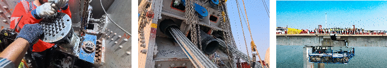 The Mumbai Coastal Road Project (MCRP) represents another landmark assignment, where our scope covered the design, supply and installation-including stressing-of stay cable clevis anchorage hangers, along with the installation of a gigantic girder weighing more than 30 Boeing jets. This critical operation enabled the seamless connection of the coastal road to the Bandra–Worli Sea Link, contributing to one of India’s most complex marine infrastructure corridors.